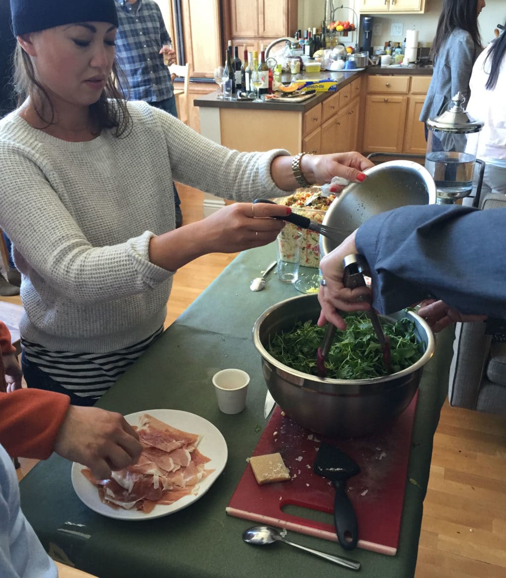 First, the crew got busy making prosciutto, arugula & melon salad rolls to start.